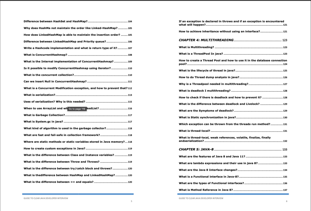 The book also dives into the intricate world of Multithreading, an area that many interviews focus on to assess your proficiency in concurrent programming.